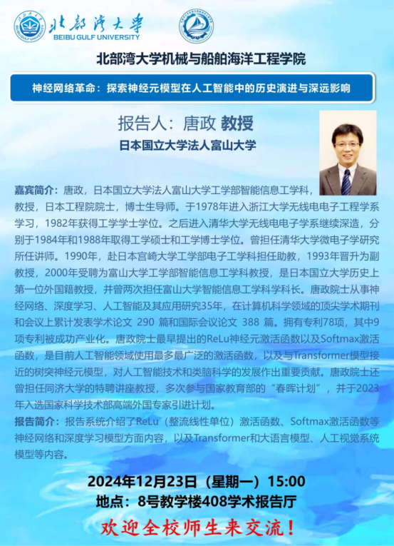 上一条:唐政教授作题为《神经网络革命:探索神经元模型在人工智能中的历史演进与深远影响》的学术报告
