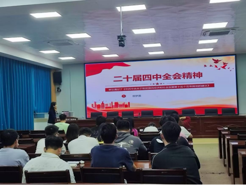 为深入学习贯彻党的二十届四中全会精神,近期,学院党委对宣讲工作进行了周密安排。继学院党委书记翁少娟同志在党委会上带头宣讲全会精神后,各党支部迅速行动,将学习宣传贯彻全会精神作为重要政治任务抓实抓好。