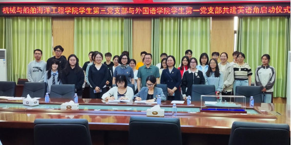 3月17日下午,机械与船舶海洋工程学院学生第三党支部与外国语学院学生第一党支部共建英语角启动仪式在8A-410会议室举行。机船学院党委书记翁少娟、外国语学院党委书记潘文昊、党委副书记伍红艺及两个共建党支部全体党员参加了本次仪式。