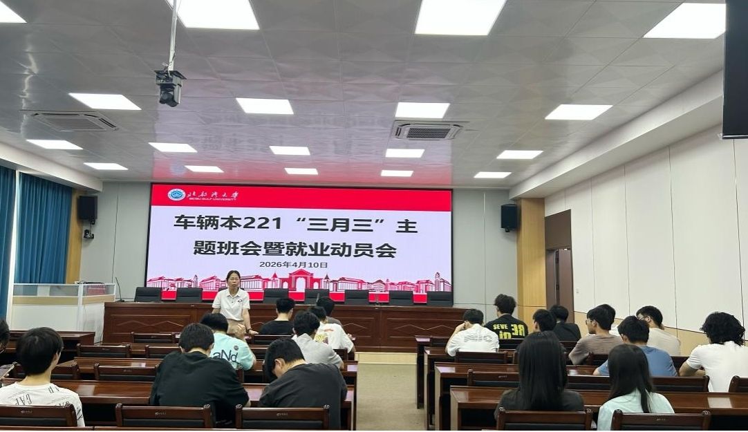 2026年4月10日上午,车辆本221班在8A-408会议室举行“三月三”主题班会暨就业动员推进会。学院党委副书记胡上英、辅导员卜建慧及班级同学参加会议。