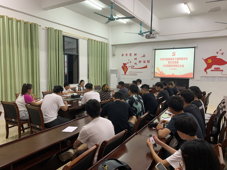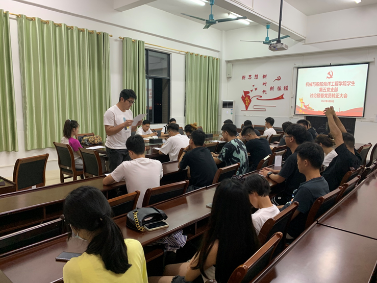 2022年6月6日20:00,我院学生第五党支部在8A-410党员活动室召开2022年春季学期预备党员转正大会,会议由支部书记梁慧老师主持,全体支部党员参加会议,讨论闫冠宇等2名预备党员转正问题。