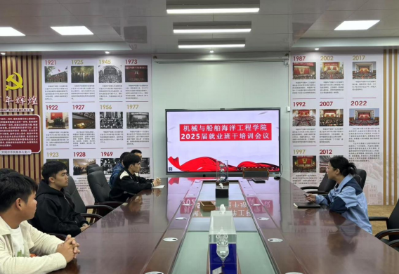 为积极应对当前严峻的就业形势,扎实推进2025届毕业生就业工作,3月5日上午,机械与船舶海洋工程学院在学院410会议室召开2025届毕业生就业班干业务培训会。学院党委副书记胡上英、毕业班辅导员黄小源以及2025届全体毕业生参加了此次会议。