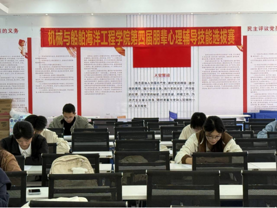 2025年11月24日,机械与船舶海洋工程学院第四届朋辈心理辅导技能选拔赛顺利开展。选拔赛采用笔试方式开展,最终择优推荐,推选出莫锦钊等三名优秀学生代表机船学院参加校赛。