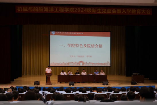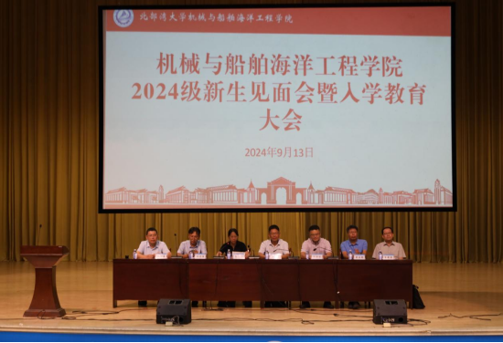 2024 年9月13日晚,机械与船舶海洋工程学院 2024 级新生见面会在学校礼堂举行。机船学院领导班子成员、系主任、专任教师、新生辅导员、班主任以及625名2024级新生参会。