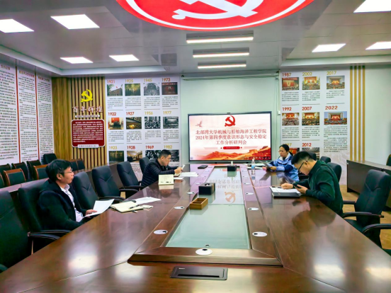 2024年12月31日,机船学院党委在学院8A-410会议室召开了2024年第四季度意识形态和安全稳定工作分析研判会。全面分析当前学院在意识形态和安全稳定工作方面面临的形势,研究部署下一步工作,确保学院各项工作平稳有序进行。