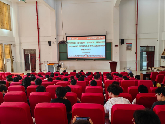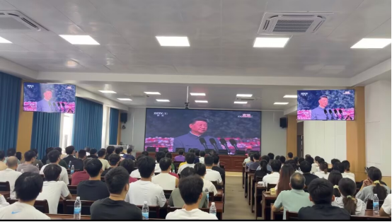 2025年9月3日上午,学院党委组织师生党员代表和学生代表分别在8A-408报告厅、8A一楼大厅、11栋213教室集中观看纪念中国人民抗日战争暨世界反法西斯战争胜利80周年阅兵直播。