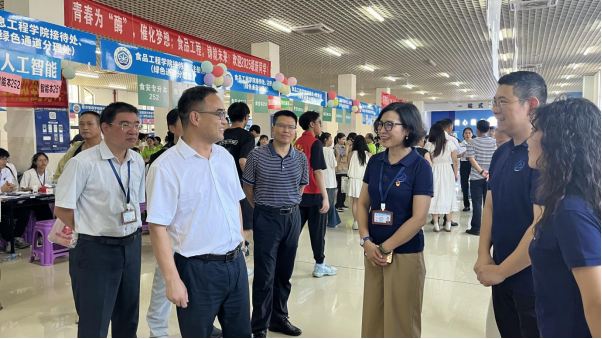 9月6日—9月7日,学院领导老师和志愿者一起在迎新大本营热情接待来校报道的新生及家长,并与他们亲切交流,详细解答家长关切的关于孩子在校学习和生活的各类问题。此外,针对家庭经济困难学生,学校专门设立了 “绿色通道”,为他们提供助学贷款、助学金等政策咨询和办理服务,确保每一位学生都能顺利入学。期间,校党委常委、副校长马秀明也来到现场检查指导迎新工作,对学院迎新工作的有序开展给予肯定。