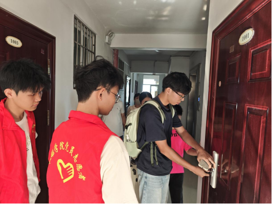 迎新日,党员志愿者身着统一服装,积极为新生及家长提供咨询和注册引导。在迎新各岗位,涌现党员志愿者忙碌的身影,他们搬运物资、提拎行李、耐心协助新生办理注册手续及安排宿舍入住,细致解答校园生活、学习实践等各类疑问,获新生与家长高度称赞。