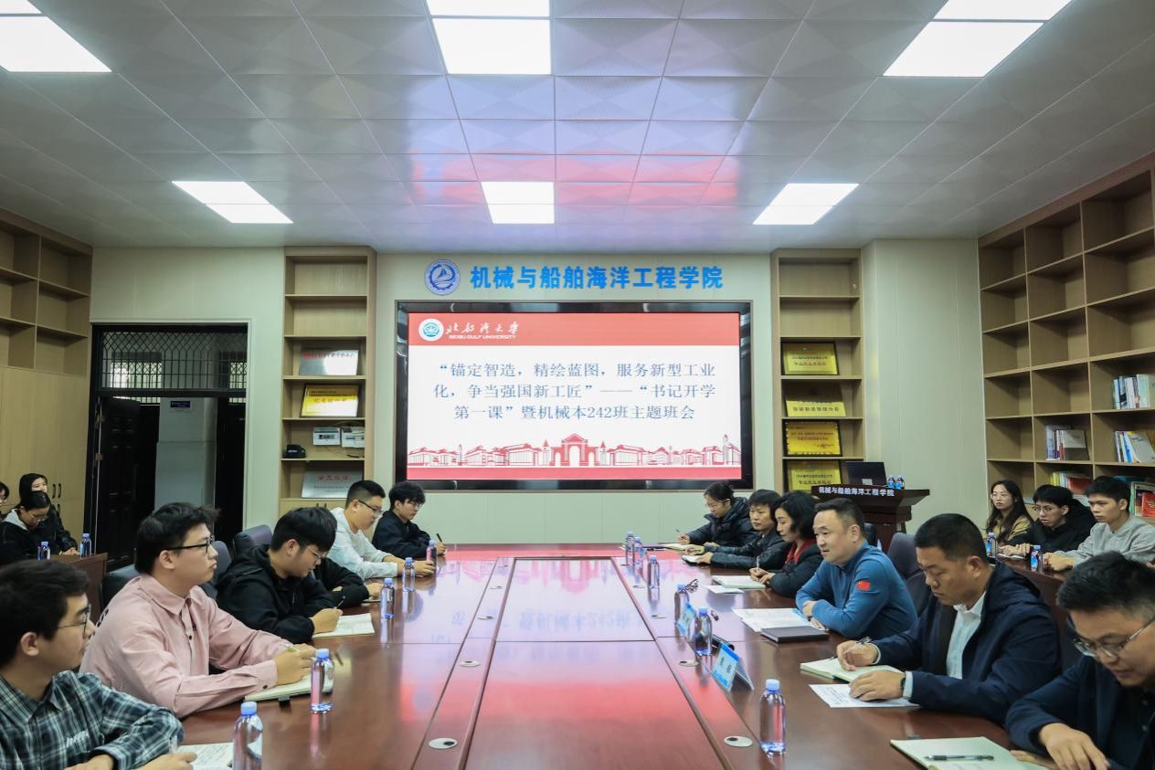 为深入贯彻“十五五”规划推进新型工业化的战略部署,引导青年学子将个人成长融入国家发展大局,厚植家国情怀、明确成长方向,2026年3月10日,校党委书记、校长苗剑深入机械与船舶海洋工程学院机械本242班,在8A-317会议室开展主题为“锚定智造,精绘蓝图,服务新型工业化,争当强国新工匠”的“书记开学第一课”暨机械本242班主题班会,会议由机船学院党委书记翁少娟主持。