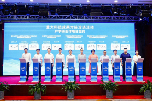 活动通过视频发布了区内外高校院所具有应用前景的科技成果2800多项,涉及电子信息、新材料、新能源、装备制造、节能环保、生物医药、现代特色农业等产业领域。在产学研合作项目签约环节,广西华芯振邦半导体有限公司、广西产研院新型功能材料研究所、广西燚能新能源有限公司、广西高峰矿业有限责任公司、北海顺应新能源材料有限公司、北部湾大学、广西产研院绿色低碳技术研究所、合浦县硅材料产业技术研究中心、广西玉柴机器股份有限公司、百洋产业投资集团股份有限公司、广西北港新材料有限公司、广西科佳装备科技有限公司分别与清华大学、西交利物浦大学、中国科学院山西煤炭化学研究所、中南大学、湖北大学、中国科学院广州能源研究所等区外高校院所开展合作项目签约。