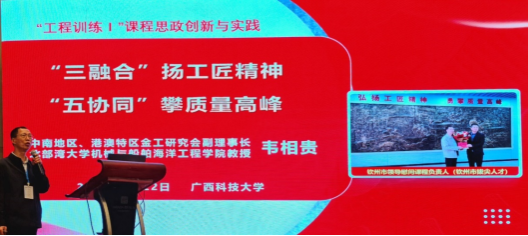 会上,韦相贵教授以“三融合扬工匠精神,五协同攀质量高峰”为题作主旨报告。韦教授从课程概况、理念思路、方法路径、成效辐射、特色创新五大维度,系统介绍了机船学院在应用型人才培养中的实践经验,重点分享了“双线贯通育人路径”的探索成果。通过自治区级课程思政示范课程和线下一流本科课程建设,我院充分发挥资源优势,赋能“四新”学科发展,助力新质生产力人才培养,相关经验赢得与会专家高度评价。