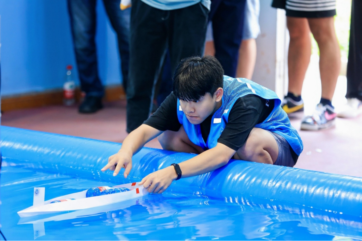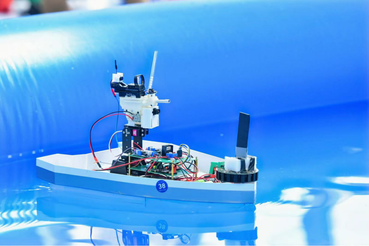 作品简介:作品由指导老师以及学生共同设计船体型线,整船搭配自主设计的动力马达以及特制螺旋桨而成,在比赛规则下做到最短时间内直线航行完成比赛。