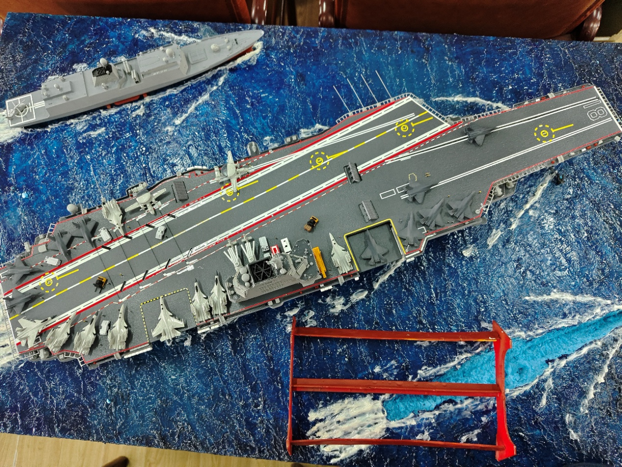作品简介:作品主体由木板和木条等环保材料构成,模拟了福建舰真实航行船体机构和各种细致的航海动态,包括舰体结构和舰载设备。同时,我们还设计了多个动态展示内容,包括先进的舰载机升降系统,电磁弹射等。充分展现了福建舰属003型航空母舰在真实海洋中的振奋感和生命力。该模型和展示内容具有高度的可视化和互动性,希望能够通过这个作品向更多人展示海洋航海的魅力和挑战。