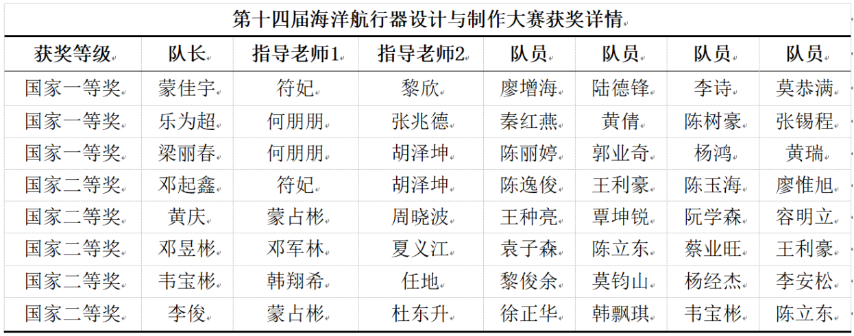 8月9日-10日,第十四届全国海洋航行器设计与制作大赛在武汉理工大学举行。北部湾大学机船学院学子荣获该全国赛事一等奖3项、二等奖5项!