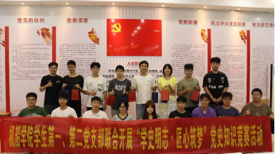 党史是中华民族宝贵的精神财富。为深入学习党的历史,传承红色基因,坚定理想信念,机械与船舶海洋工程学院学生第一党支部、第二党支部于2025年5月23日19:00-21:00在机船学院联合开展“学史明志・匠心筑梦”党史知识竞赛主题教育活动。