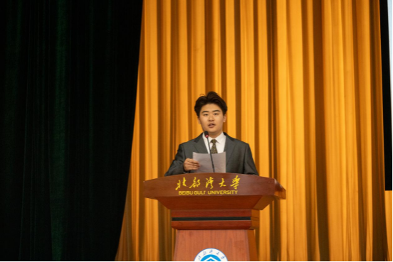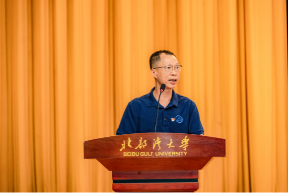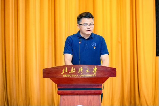 在主持人向新生介绍完到场的学院领导和老师后,见面会的四个议程逐项开展。会议第一个议程,新生代表发言。机械研251班杨登钧同学作为新生代表发言,他分享了自己选择该专业的初心与未来在湾大校园生活的期待。会议第二个议程,老生代表发言。机自本232班辛佳霖同学作为2023-2024学年度国家奖学金获得者,他结合自身在湾大学习生活的经历,用质朴的语言向新生讲述学长的成长励志故事,帮助新生规划大学生活。会议第三个议程,教师代表发言。自治区模范教师韦相贵教授结合学院专业特点,把专业术语与思政教育巧妙融合,他说,机械的每一个零件、船舶的每一处结构,都容不得丝毫误差。希望同学们养成“毫米必较”的习惯,把青春焊进钢板的焊缝,把梦想拧进龙骨的螺栓,把名字写在中国制造的证书上!会议第四个议程,学院院长邓军林致辞。邓院长代表学院全体师生向2025级新同学欢迎,随后向新生介绍了学院的发展历程,办学特色与育人理念,并从“学会合作与共享”“注重沟通与交流”“做好自我管理”“保持探索与热情”四个方面对新生提出殷切期望,鼓励大家以奋斗姿态开启人生新征程。