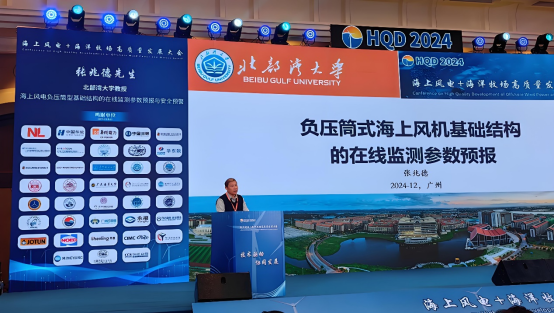 北部湾大学机械与船舶海洋工程学院韩翔希副院长和张兆德教授出席了本次大会,并积极参与了相关讨论。张兆德教授在会上作题为《负压筒式海上风机基础结构的在线检测参数预报》的主题演讲。他详细介绍了负压筒式海上风机基础结构的特点及其在线检测技术,并分享了最新的研究成果和应用案例。张教授的演讲引起了与会专家和学者的广泛关注,大家纷纷就相关技术问题进行了深入交流和探讨。