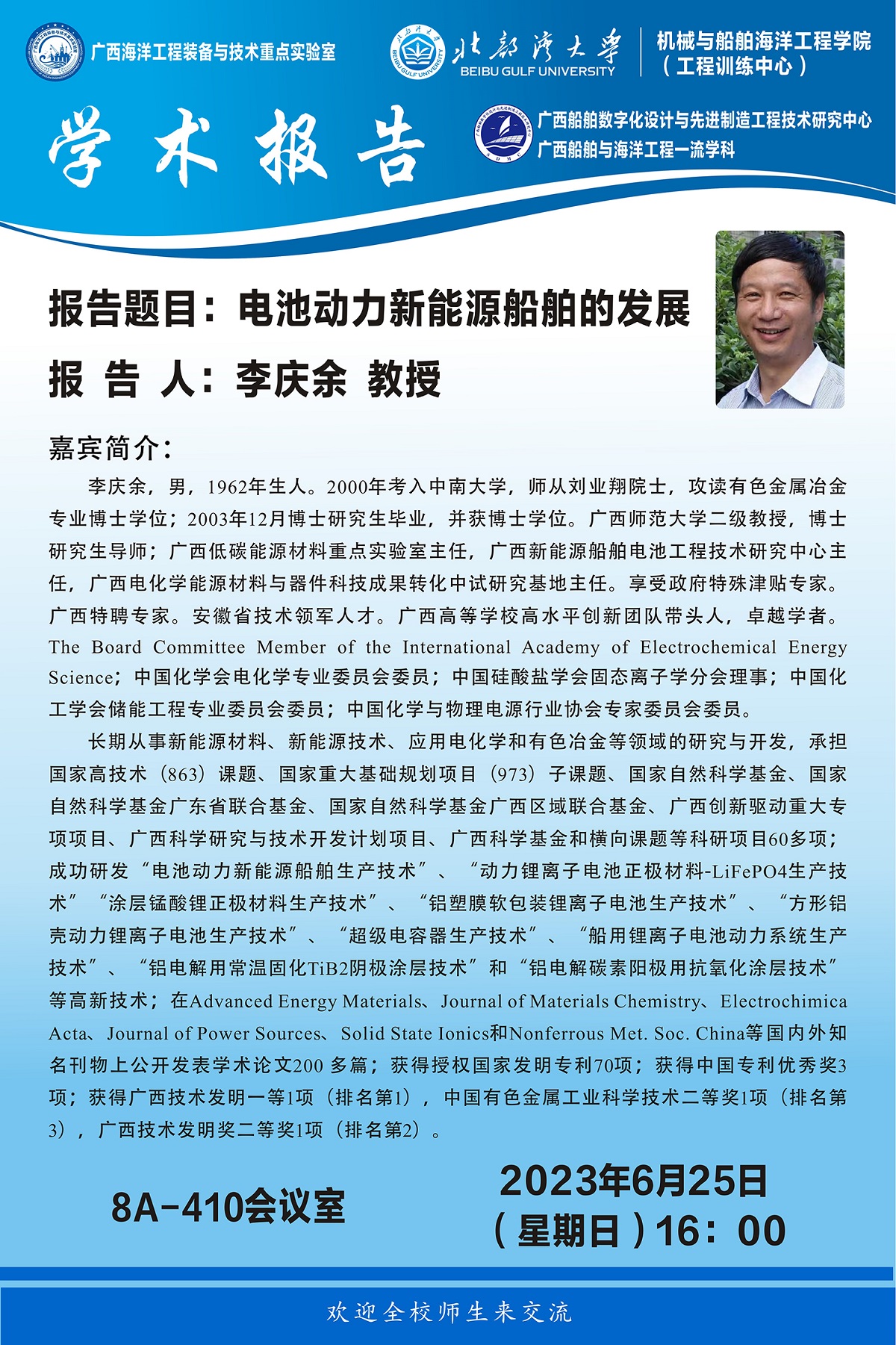 上一条:【学术报告】李庆余教授作题为“电池动力新能源船舶的发展”的学术报告