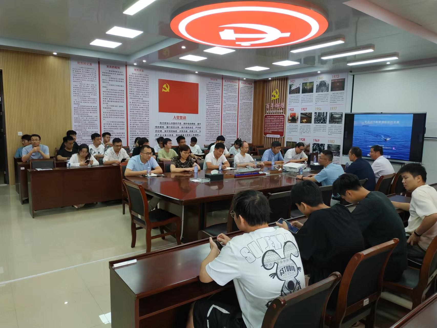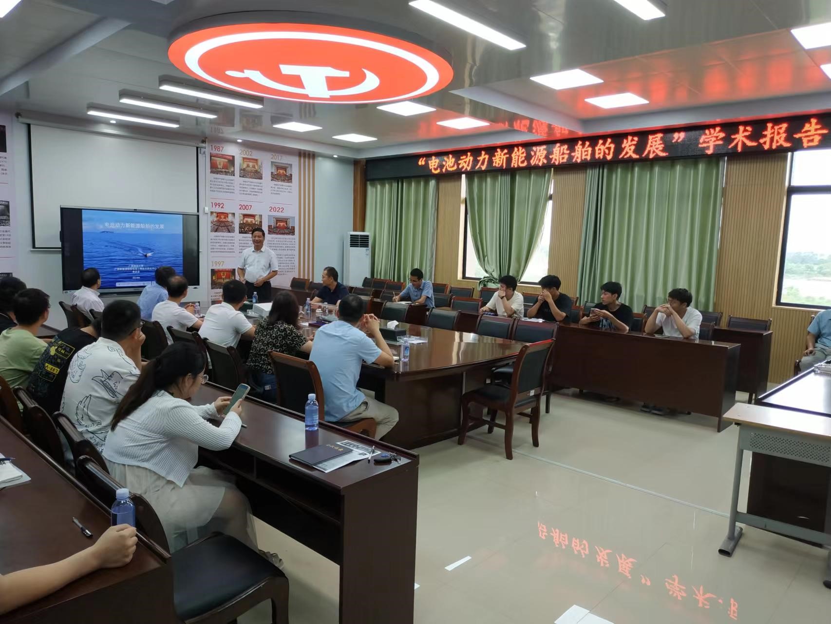 首先,由蒙占彬博士简要介绍了李庆余教授的工作履历、主要研究方向及科研成果等基本情况,并向大家简单介绍了与会教师。随后,由李庆余教授向大家作了题为“电池动力新能源船舶的发展”的学术报告,他从电池动力新能源船舶的研发背景、电池动力新能源船舶的研发和运行、团队在船舶用锂离子电池动力系统方面所做的研发和推广应用工作、电池动力新能源船舶的发展等四个方面展开介绍。之后,与会师生代表积极向李庆余教授提问交流。最后,由蒙占彬博士做总结发言,他盛赞李庆余教授学术研究成果,并邀请李庆余教授今后继续来校多多交流指导。
