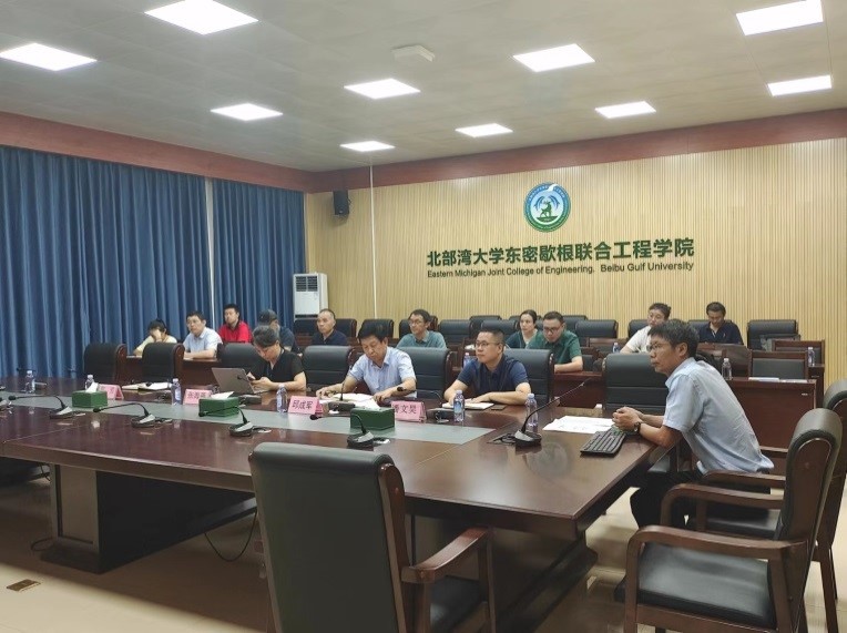2023年7月20日,受广西壮族自治区教育厅委托,在北部湾大学东密歇根联合工程学院407会议室组织召开“船舶与海洋工程”一流学科中期建设专家评审会。北部湾大学邀请中国工程院院士李华军、长江学者特聘教授段文洋、国务院学科评议组成员余建星、陈刚等专家对广西“船舶与海洋工程”一流学科(B类)建设项目中期完成情况进行评估。此次评估会议采用线上线下相结合的方式,会议由机械与船舶海洋工程学院院长邱成军主持,校党委常委、副校长陈丹致辞,一流学科负责人蒙占彬对学科中期建设完成情况进行了详细汇报,并对专家意见进行了解答。出席本次会议的还有科技处处长张海燕、副处长郭哲、机船学院党委书记潘文昊以及机船学院和各协同学院“船舶与海洋工程”学科骨干老师。