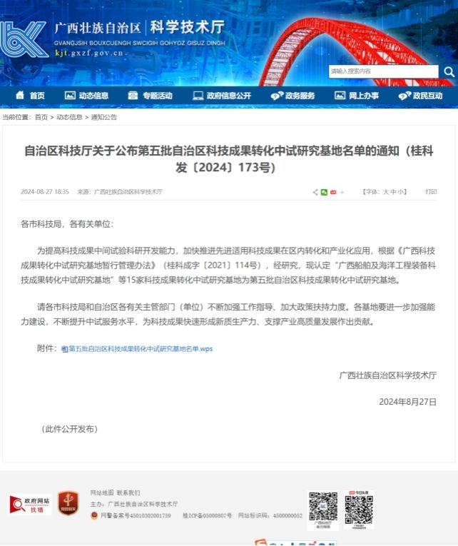 近日,根据自治区科技厅通知公告,机船学院参与中国船舶集团广西造船有限公司牵头共建的“广西船舶及海洋工程装备科技成果转化中试研究基地”获批为第五批自治区科技成果转化中试研究基地。“广西船舶及海洋工程装备科技成果转化中试研究基地”由中国船舶集团广西造船有限公司牵头,联合中国船舶集团华南船机有限公司、广西西江重工有限责任公司、广西产研院绿色低碳技术研究所有限公司、北部湾大学、广西电力职业技术学院等共建,协同开展船舶与海洋工程装备关键核心技术攻关,加快推进新技术、新工艺的研发和应用,培育高层次人才和新质生产力,以“基础研究—技术攻关—技术应用—成果产业化”全过程无缝衔接,推动建设船舶与海洋工程装备行业科技成果放大器、企业孵化器、行业助推器、产业集聚器,为公司产业和广西向海经济发展做出更大的贡献。